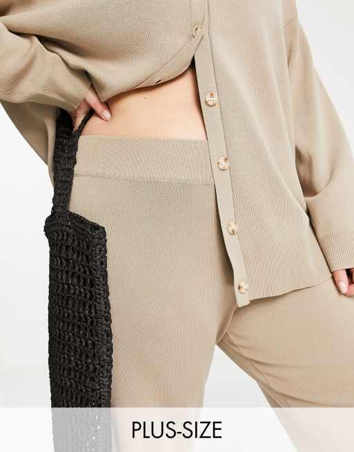 Pantalones de campana color topo de punto de Pretty Lavish Curve (parte de un conjunto)