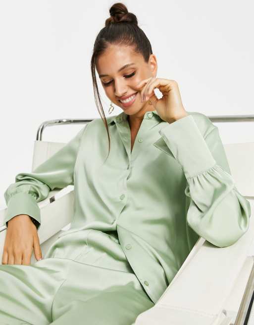 Camisa verde menta extragrande de satén de Pretty Lavish (parte de un conjunto)