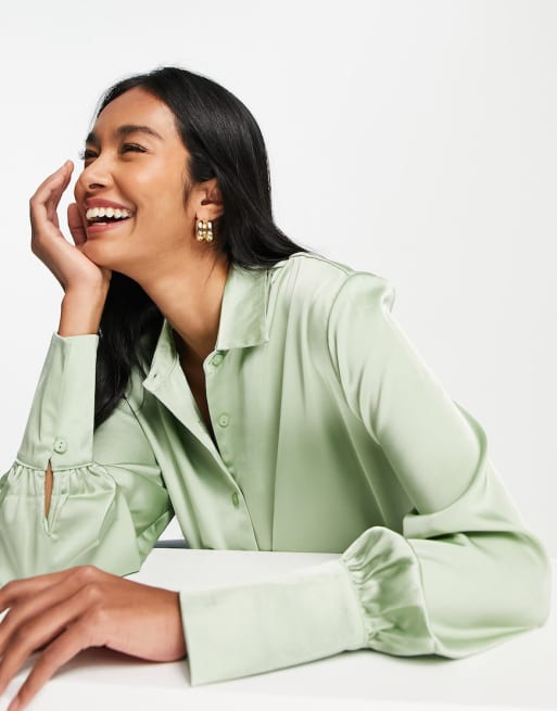 Conjunto color menta de camisa holgada y pantalones de satén de Pretty Lavish