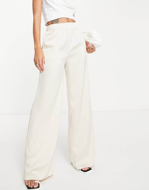 Pantalones color crema holgados de satén de Pretty Lavish (parte de un conjunto)
