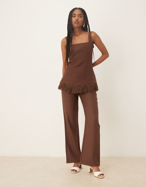 Pantalones marrón chocolate Verona de Pretty Lavish (parte de un conjunto)