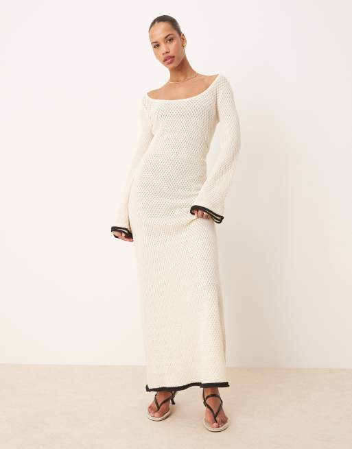 Vestido largo color crema con volantes en contraste en las mangas de punto de Pretty Lavish