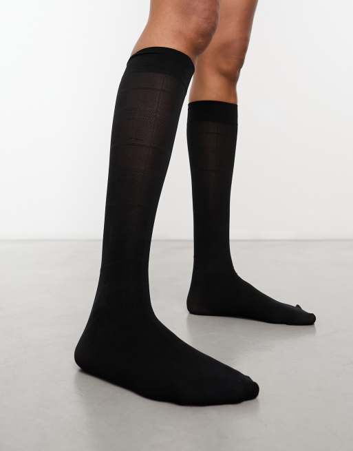 Calcetines por la rodilla negros con patrón de cuadros escoceses de Pretty Polly