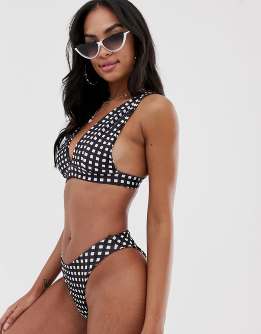 Bikini en blanco y negro con diseño de vichy de PrettyLittleThing