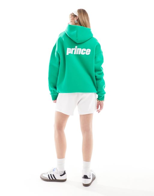 Sudadera verde luminoso con capucha y logo en la espalda de Prince