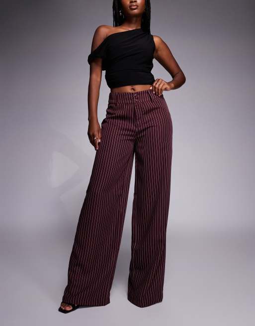 Pantalones de sastre burdeos de talle medio y pernera ancha con raya diplomática Lorenne de Princess Polly