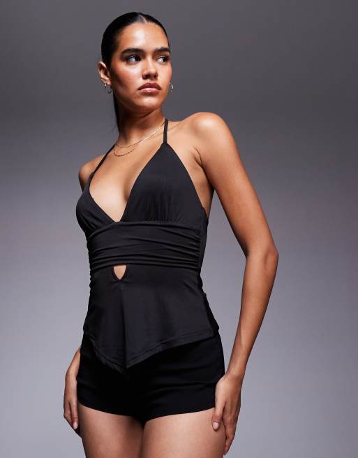 Top negro escotado con detalle cruzado envolvente Averee de Princess Polly