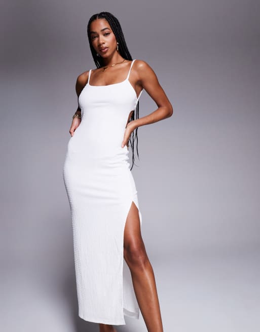 Vestido largo blanco con cuello de pico y tiras cruzadas en la espalda de Princess Polly