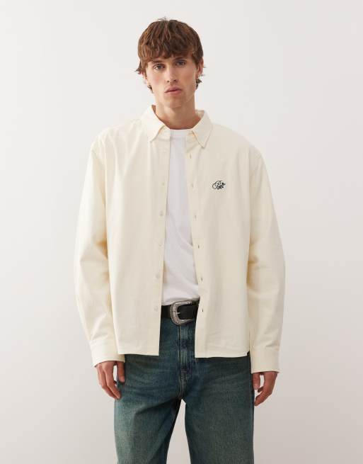 Camisa color crema extragrande de manga larga con botones y logo de Prohibited