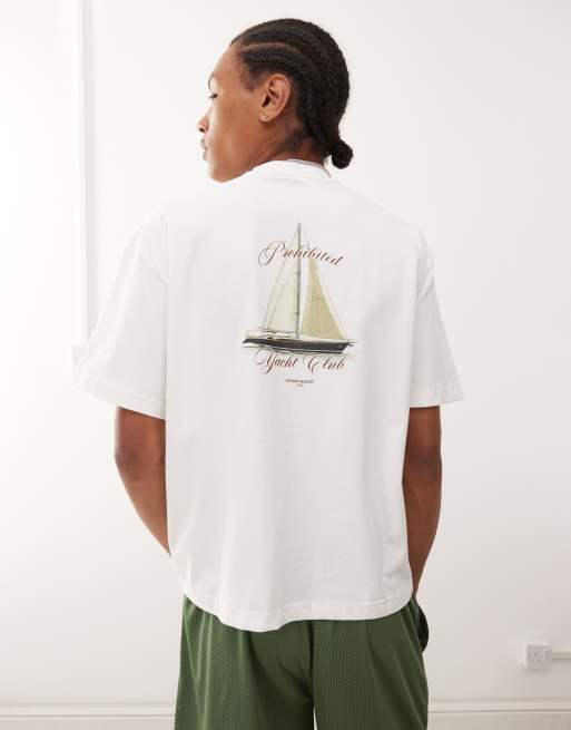 Camiseta blanco hueso con estampado gráfico de yate de Prohibited