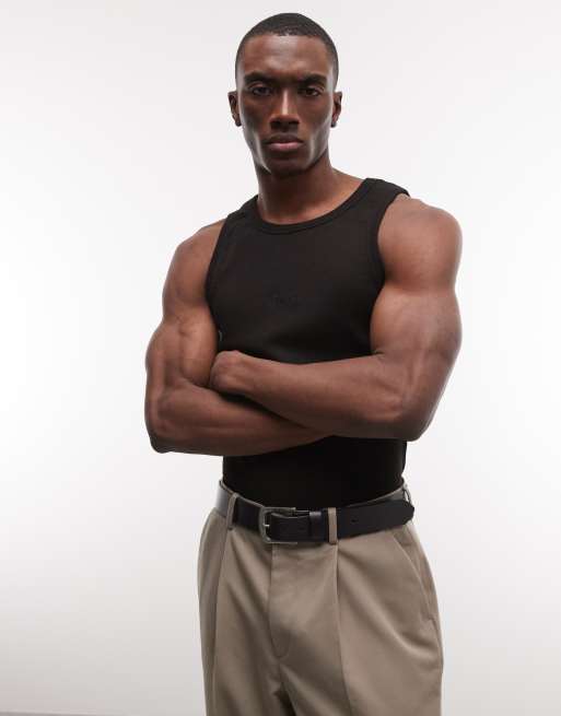 Camiseta negra sin mangas con logo bordado de Prohibited