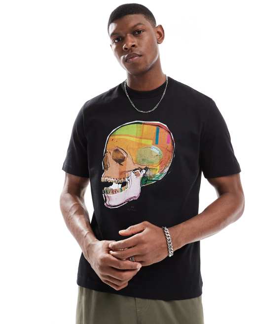Camiseta negra con estampado de logo y calavera de PS Paul Smith