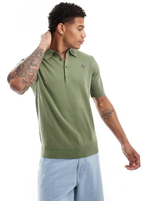 Polo caqui con logo de cebra de punto de PS Paul Smith