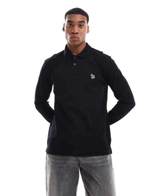 Polo negro de manga larga y corte estándar con logo de PS Paul Smith