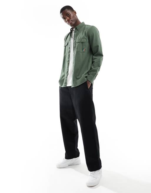 Sobrecamisa verde medio abotonada con 2 bolsillos y logo de cebra de sarga de PS Paul Smith