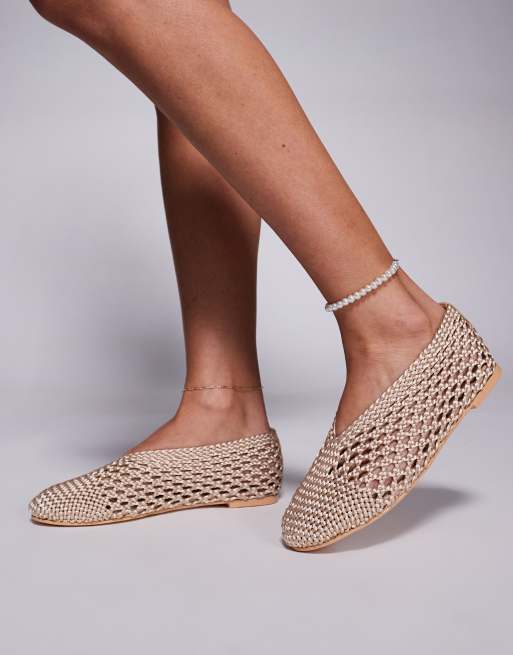 Bailarinas color crema con diseño entretejido Dylan de Public Desire Wide Fit