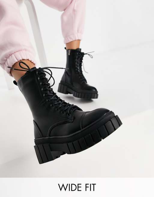 Botas negras de suela gruesa con cordones Omega de Public Desire Wide Fit
