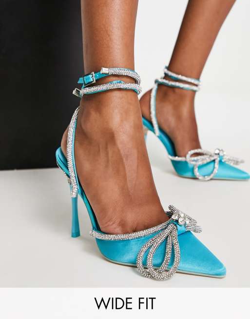 Zapatos azules de tacón con lazo de satén Midnight de Public Desire Wide Fit