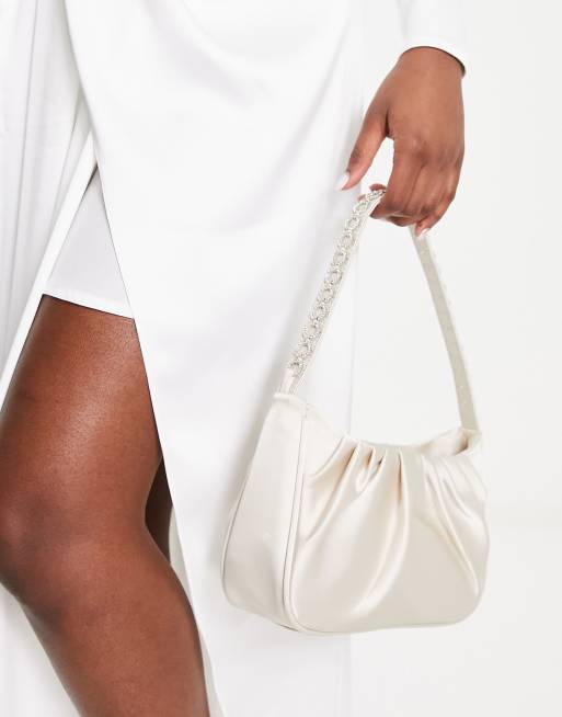 Bolso de hombro de novia color champán fruncido de satén de Public Desire