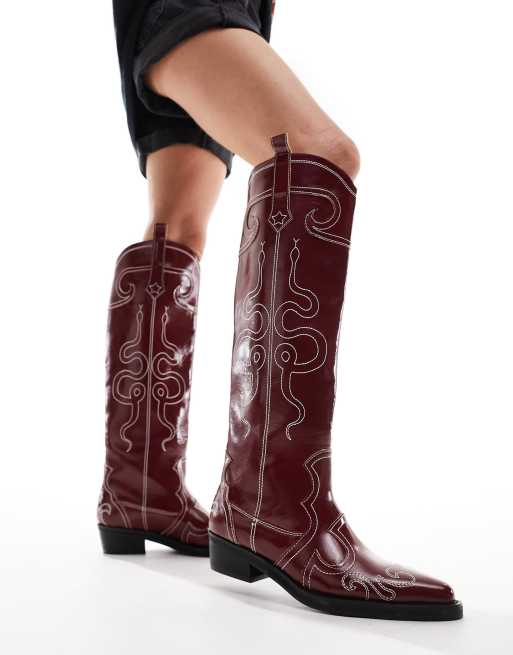 Botas burdeos de estilo wéstern con bordados Serpentine de Public Desire