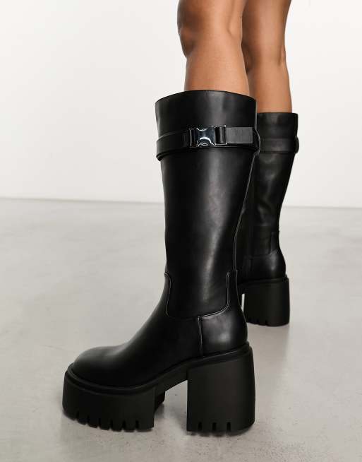 Botas negras por la rodilla negras con suela gruesa y hebilla de Public Desire