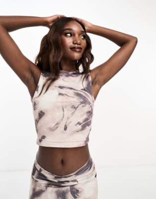 Conjunto con estampado marrón de top corto sin mangas y falda larga de Public Desire