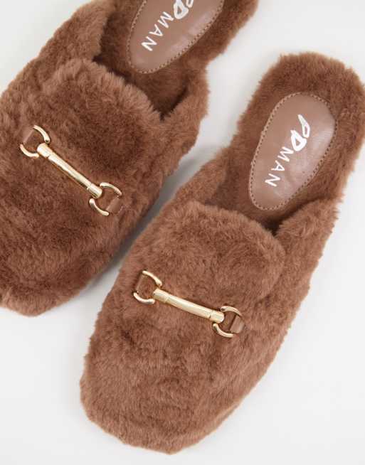 Pantuflas tostadas de piel sintética con bridón Rococo de Public Desire Man