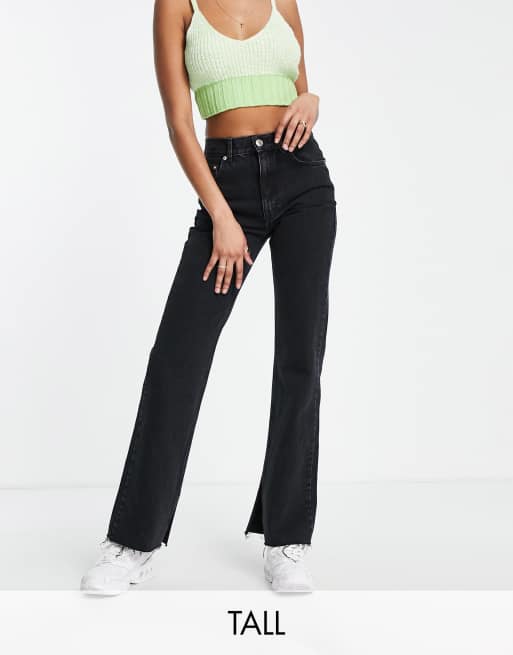 Vaqueros negros de talle alto y pernera recta con abertura en el bajo de Pull&Bear Tall