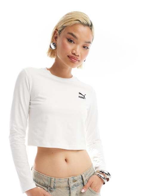 Camiseta blanca de manga larga con diseño encogido Classics de PUMA