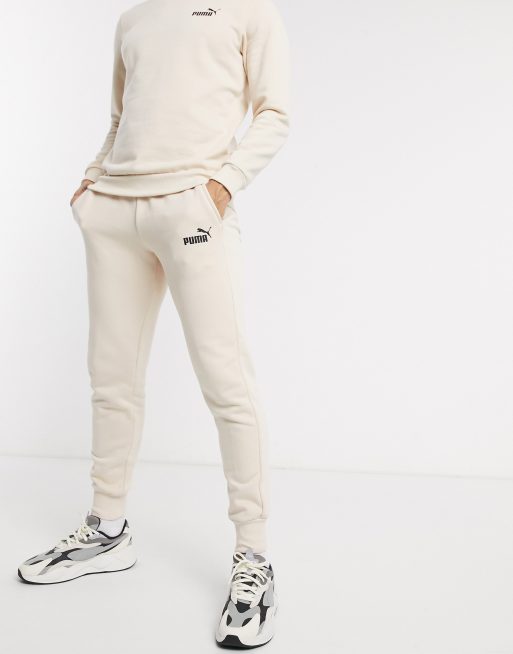 Joggers color piedra con logo pequeño de Puma