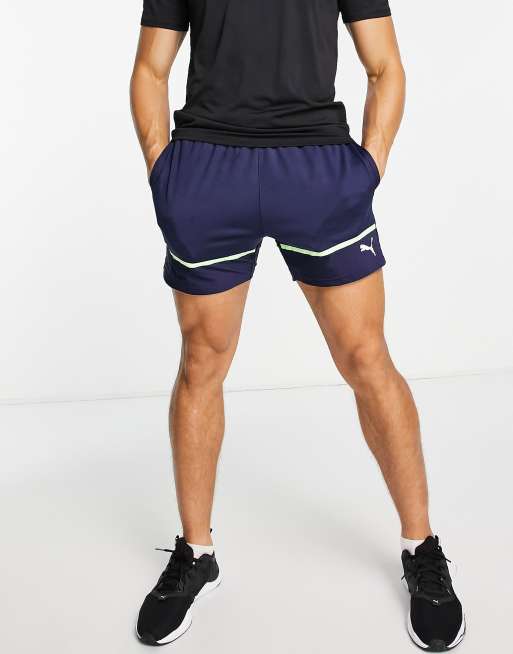 Pantalones cortos de 5" azul marino con ribetes amarillos de PUMA Training