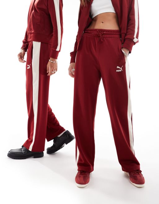Pantalones de chándal burdeos de pernera recta Iconic T7 de PUMA