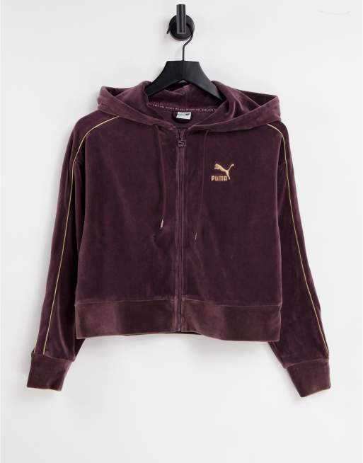 Sudadera burdeos y dorada con capucha y cremallera de velour Iconic T7 de PUMA