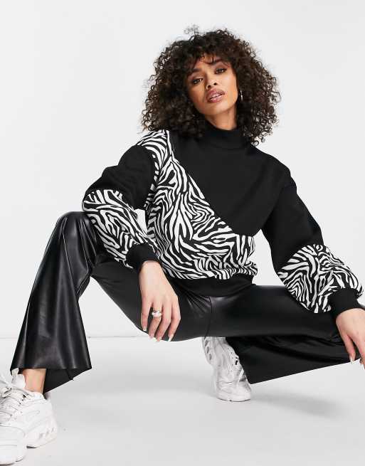 Jersey con estampado animal y cuello alto de QED London