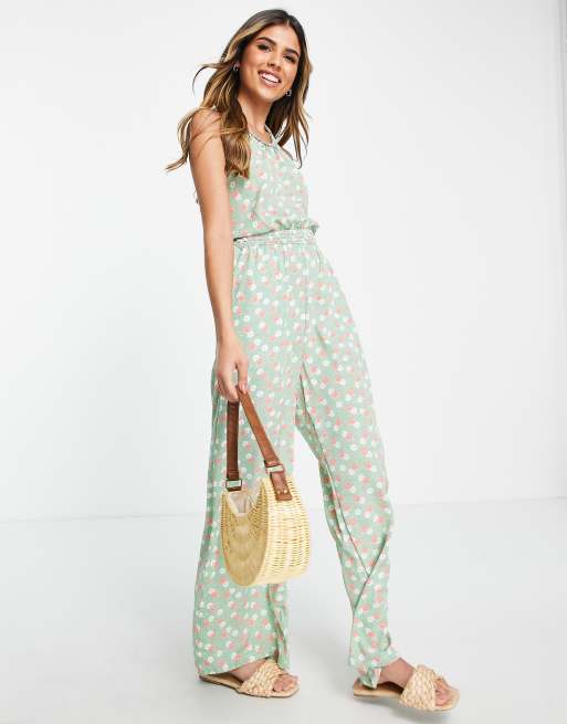 Mono largo con estampado floral, cuello halter y lazada en la parte posterior de QED London
