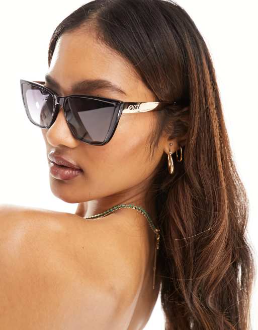 Gafas de sol doradas y negro brillante de estilo ojos de gato Face Card de Quay