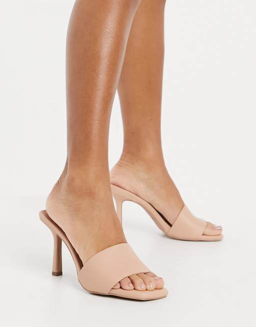 Chinelas de tacón beis con empeine liso de QUPID