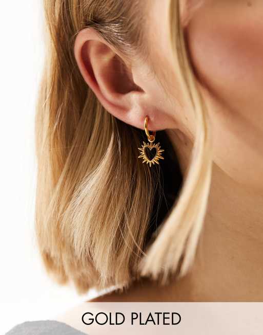 Pendientes de aro pequeños chapados en forma de corazón en oro de 22 quilates con caja de regalo Electric Love de Rachel Jackson