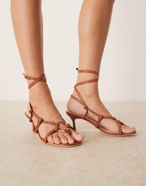 Sandalias marrones de tacón con diseño anudado a la pierna y detalle de metal Danika de RAID Wide Fit