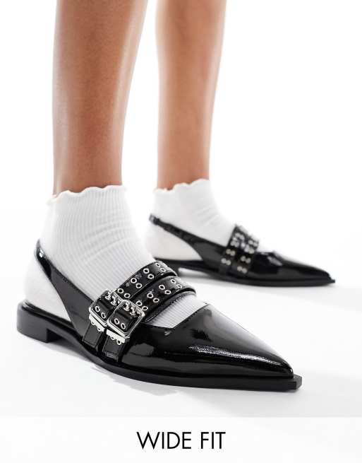 Zapatos negros planos destalonados con hebillas de charol Ichika de RAID Wide Fit