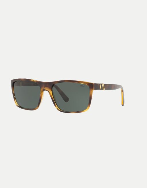 Gafas de sol marrón oscuro brillante transparente rectangulares con lentes verdes de Polo Ralph Lauren