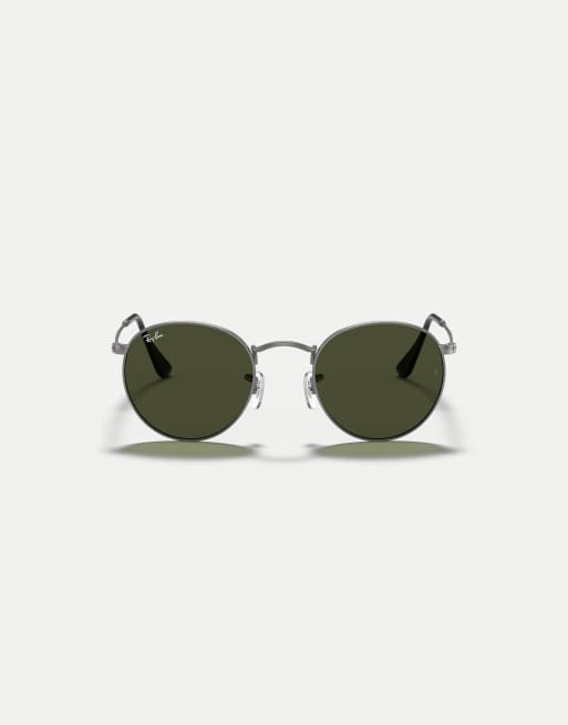 Gafas de sol gris acero con montura redondeada metálica y lentes verdes de Ray-Ban