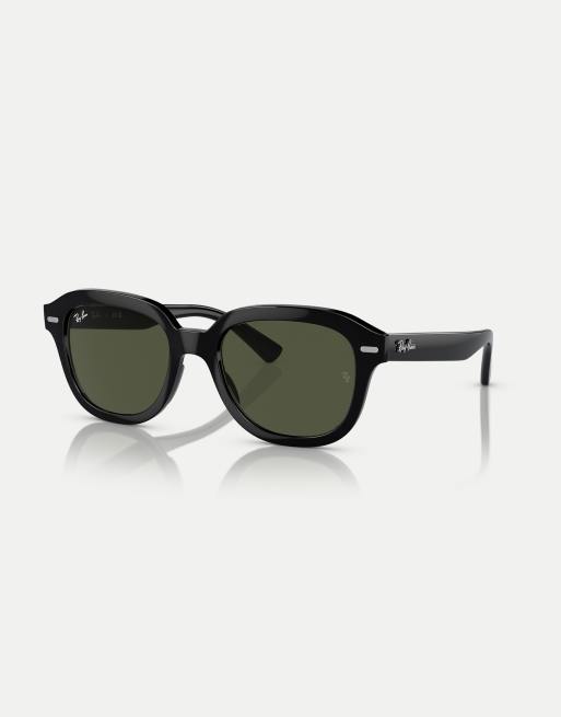 Gafas de sol negras con montura rectangular y lentes verdes Erik de Ray-Ban