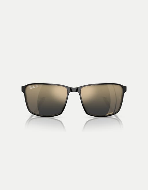 Gafas de sol negras y doradas cuadradas con lentes azules efecto espejo polarizadas RB3721CH Chromance de Ray-Ban