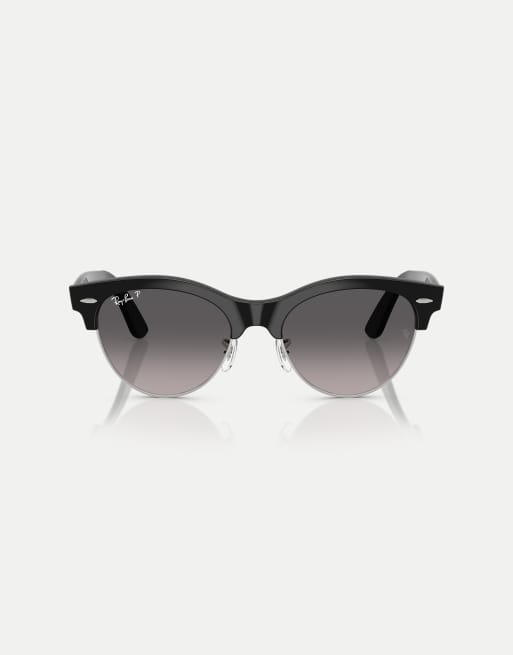Gafas de sol negras y plateadas con lentes grises polarizadas Clubmaster de Ray-Ban