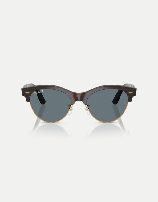 Gafas de sol rojo efecto carey y doradas con lentes azules polarizadas Clubmaster de Ray-Ban