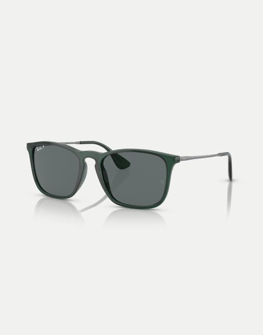 Gafas de sol verde transparente cuadradas con lentes grises polarizadas Chris de Ray-Ban