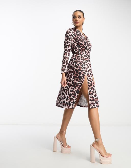 Vestido midi con estampado animal y parte delantera cruzada de Rebellious Fashion