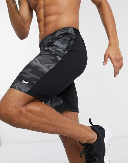 Pantalones cortos negros con diseño de camuflaje de Reebok Training