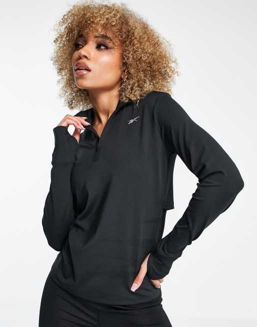 Top negro básico de manga larga con cremallera corta de Reebok Running